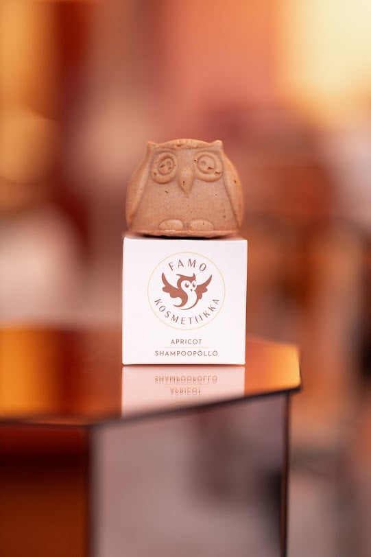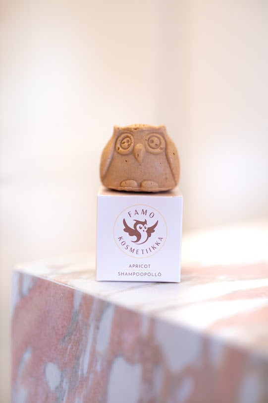 Parantaa kammattavuutta ja silottaa hiuksen pintaa. Aprikoosi shampoopöllö sisältää kosteuttavan aprikoosin siemenöljyn ja mangovoin lisäksi keltaista mineraali savea. Keltainen savi vähentää ylimääräisen talin kertymistä hiuspohjaan ja auttaa torjumaan hilsettä. Keltaisella savella on antimikrobisia ominaisuuksia. Aprikoosi shampoopöllö pesee hiukset ilmaviksi kuivattamatta hiuksia.